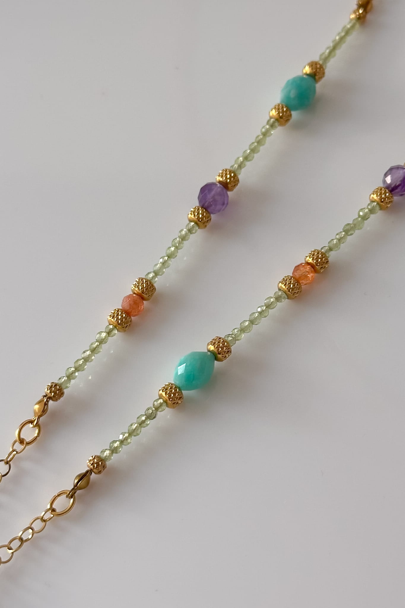 ✔ Kamienie: amazonit, pomarańczowy awenturyn, różowy turmalin, ametyst, oliwin