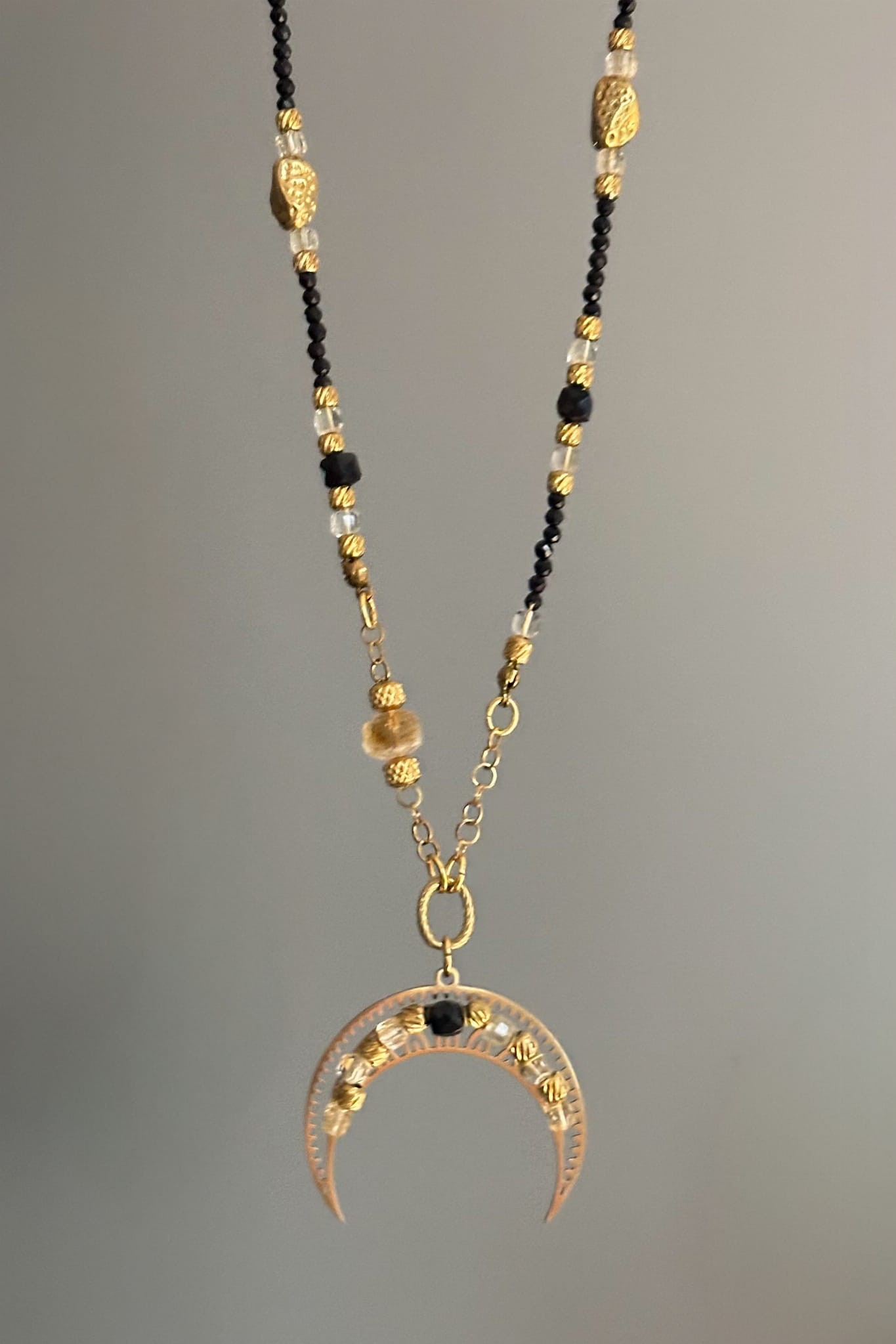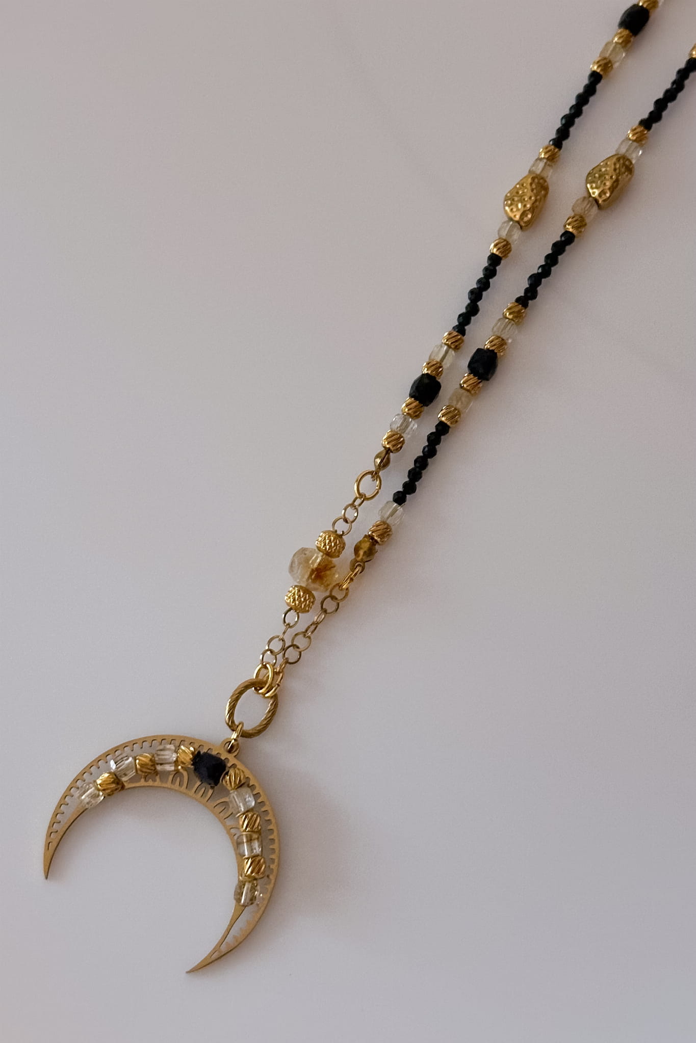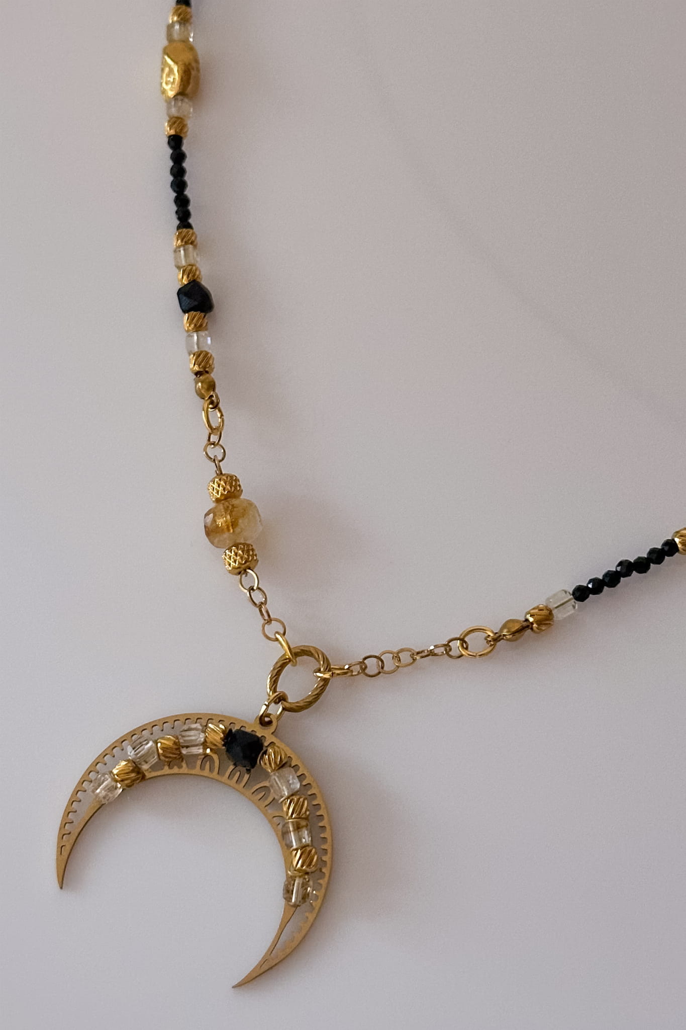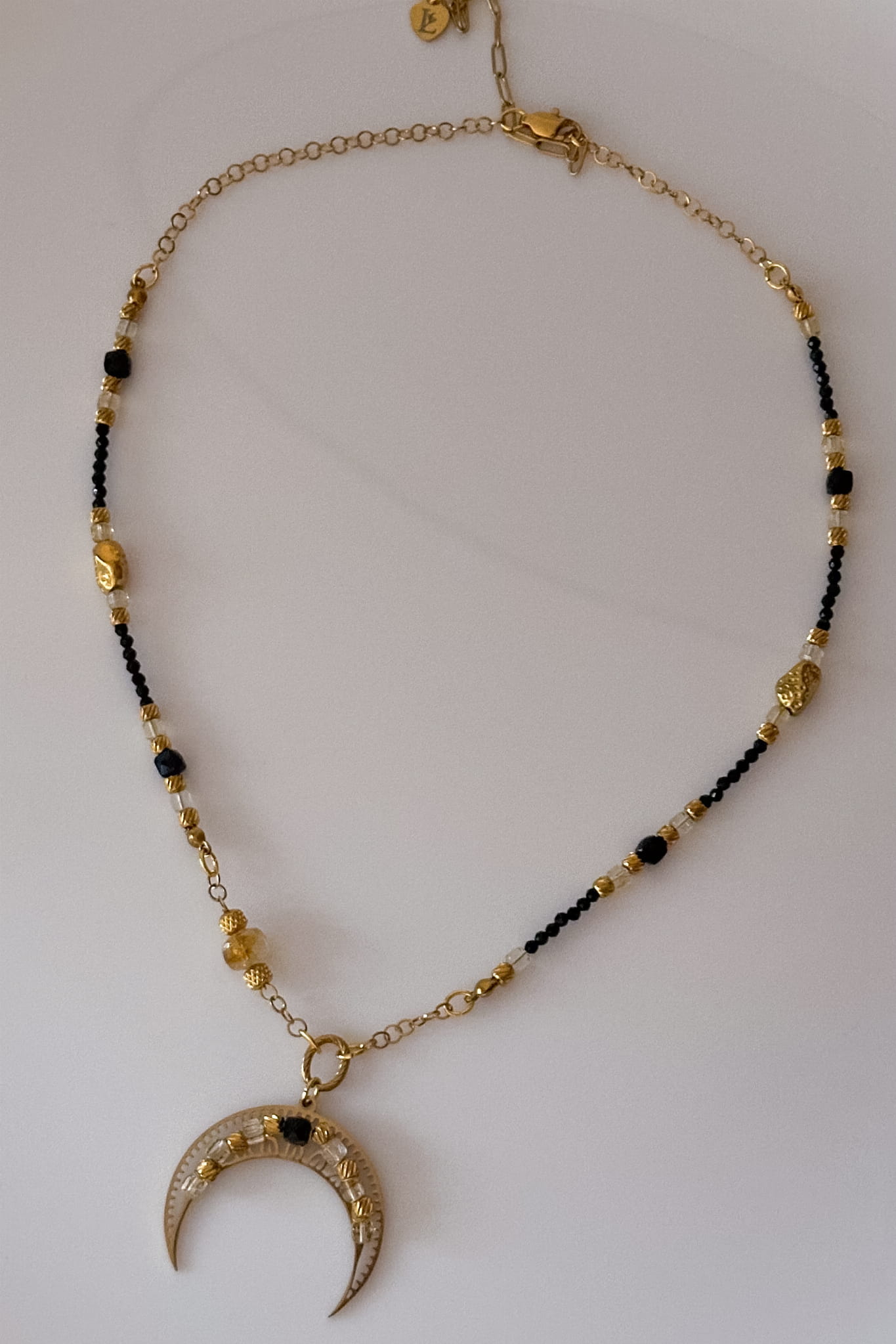 134 Unikat Lunula Girl Boss Naszyjnik z księżycem z kamieniami naturalnymi: cytryn & czarny turmalin