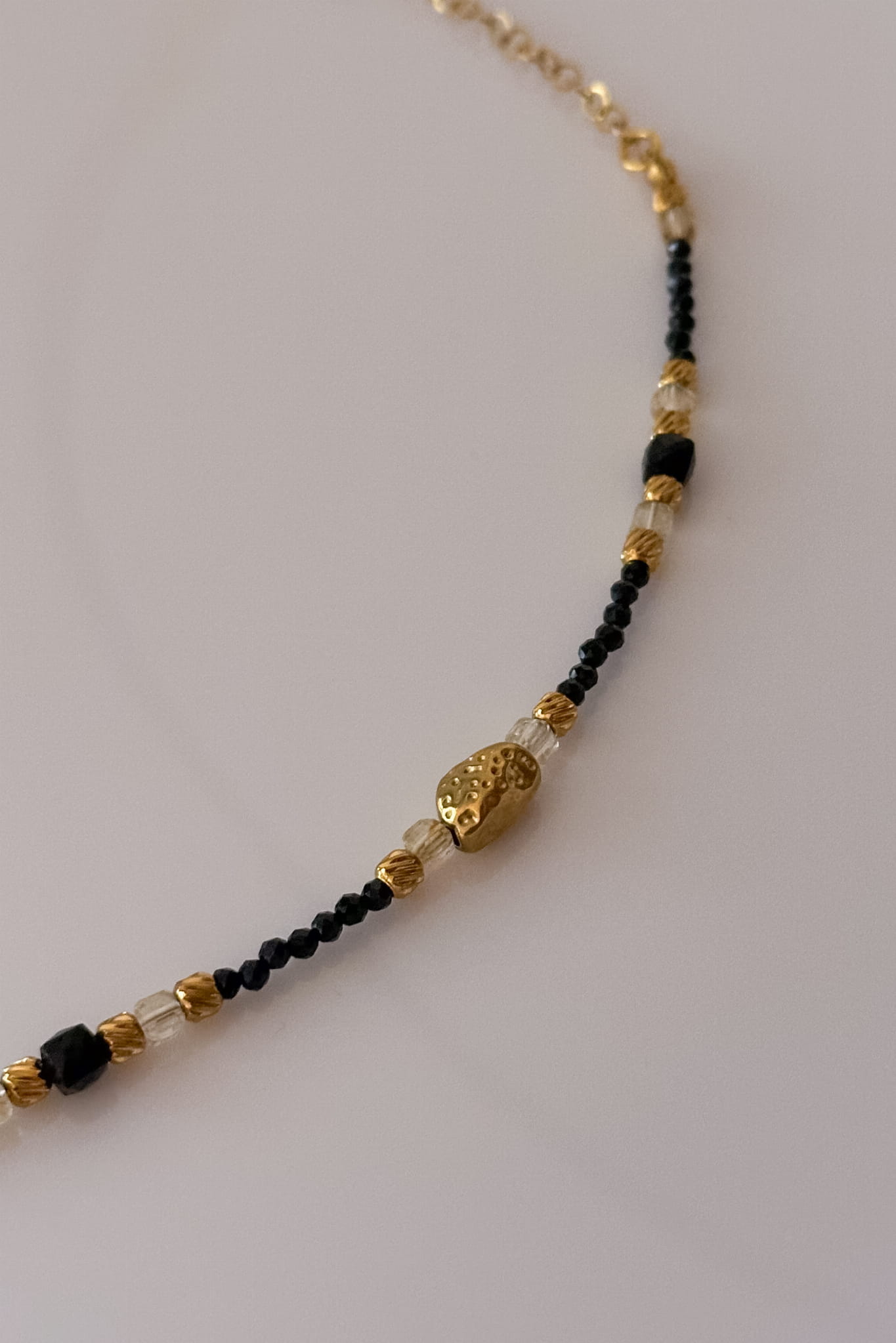 Naszyjnik Lunula Girl Boss z cytrynem i czarnym turmalinem — stworzony jako subtelny symbol siły, jasności i odwagi w działaniu. Ręcznie dobierane kamienie, stal szlachetna i niepowtarzalna kompozycja w jednym egzemplarzu. Długość 45 cm + 7 cm przedłużenia, zapięcie na karabińczyk.