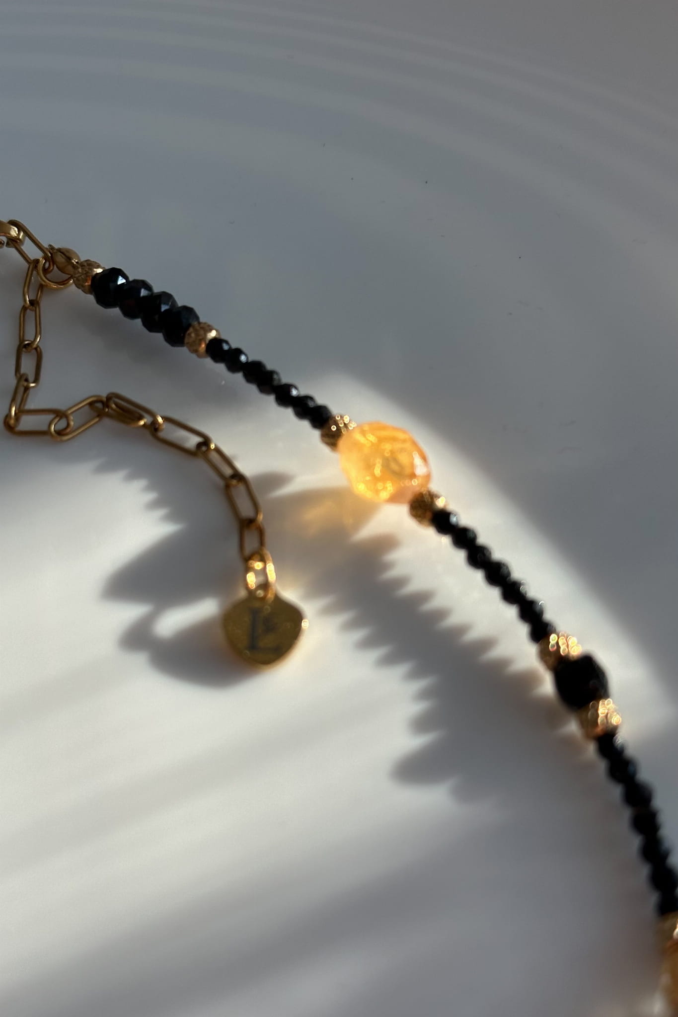 171 Unikat Lunula Konkretnych Celów z czarnym turmalinem i cytrynem