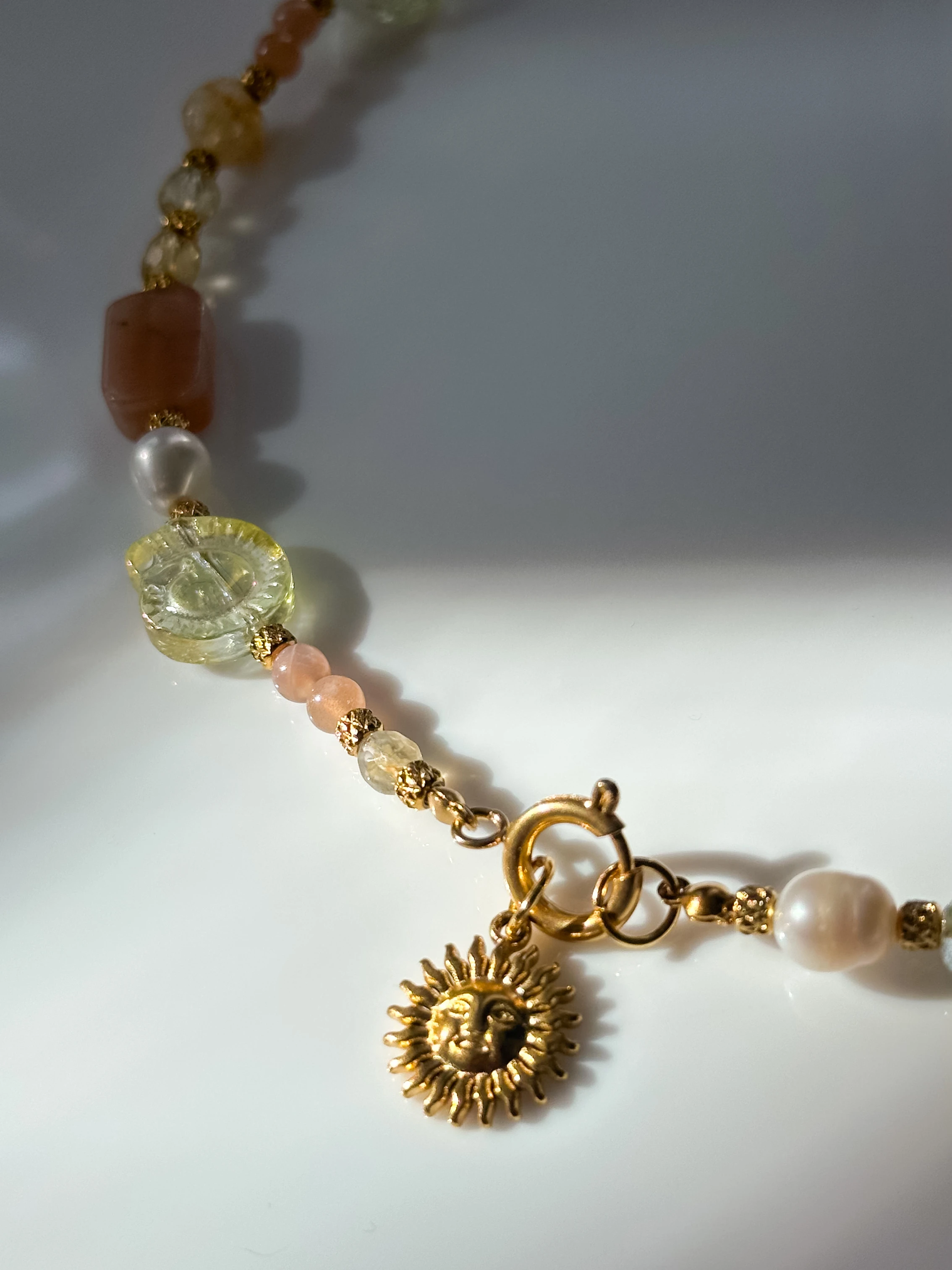 222 Unikat Letniego Słońca z kamieniami cytryn, kamień słoneczny, perła