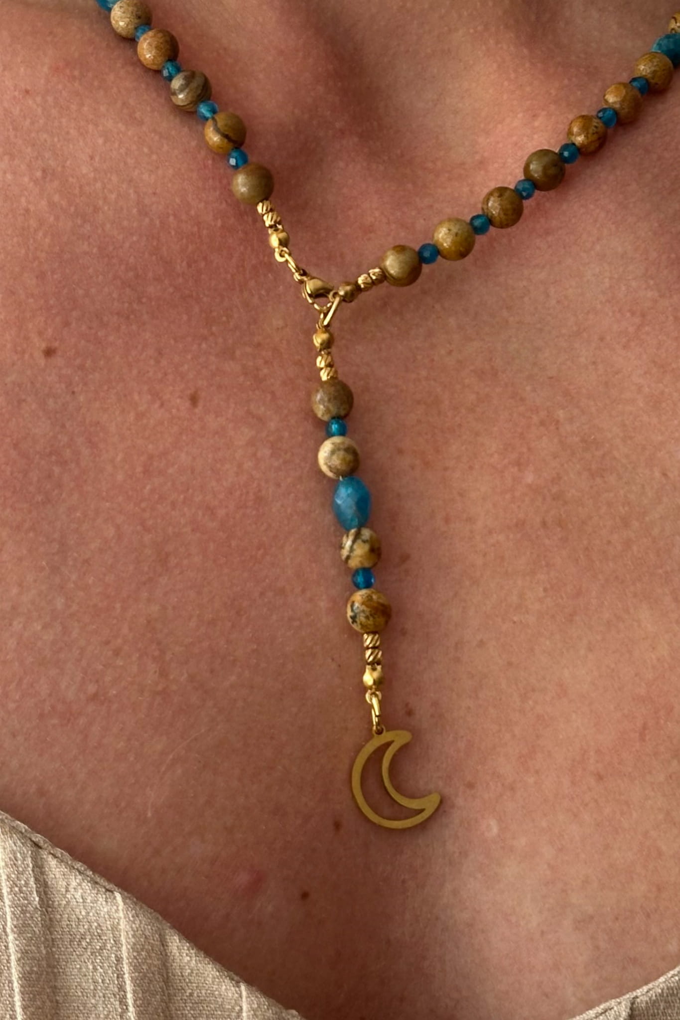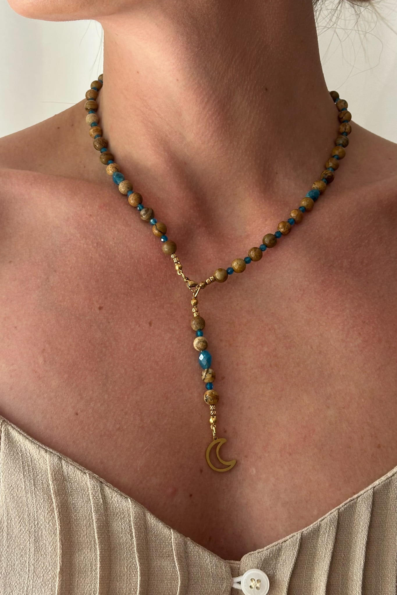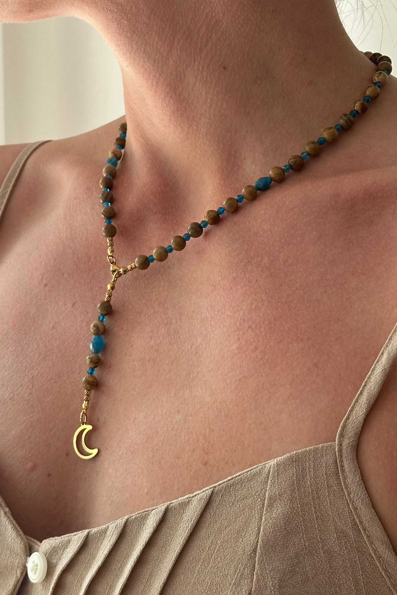 65 Unikat – naszyjnik z apatytu i jaspisu drzewnego z zawieszką księżyca