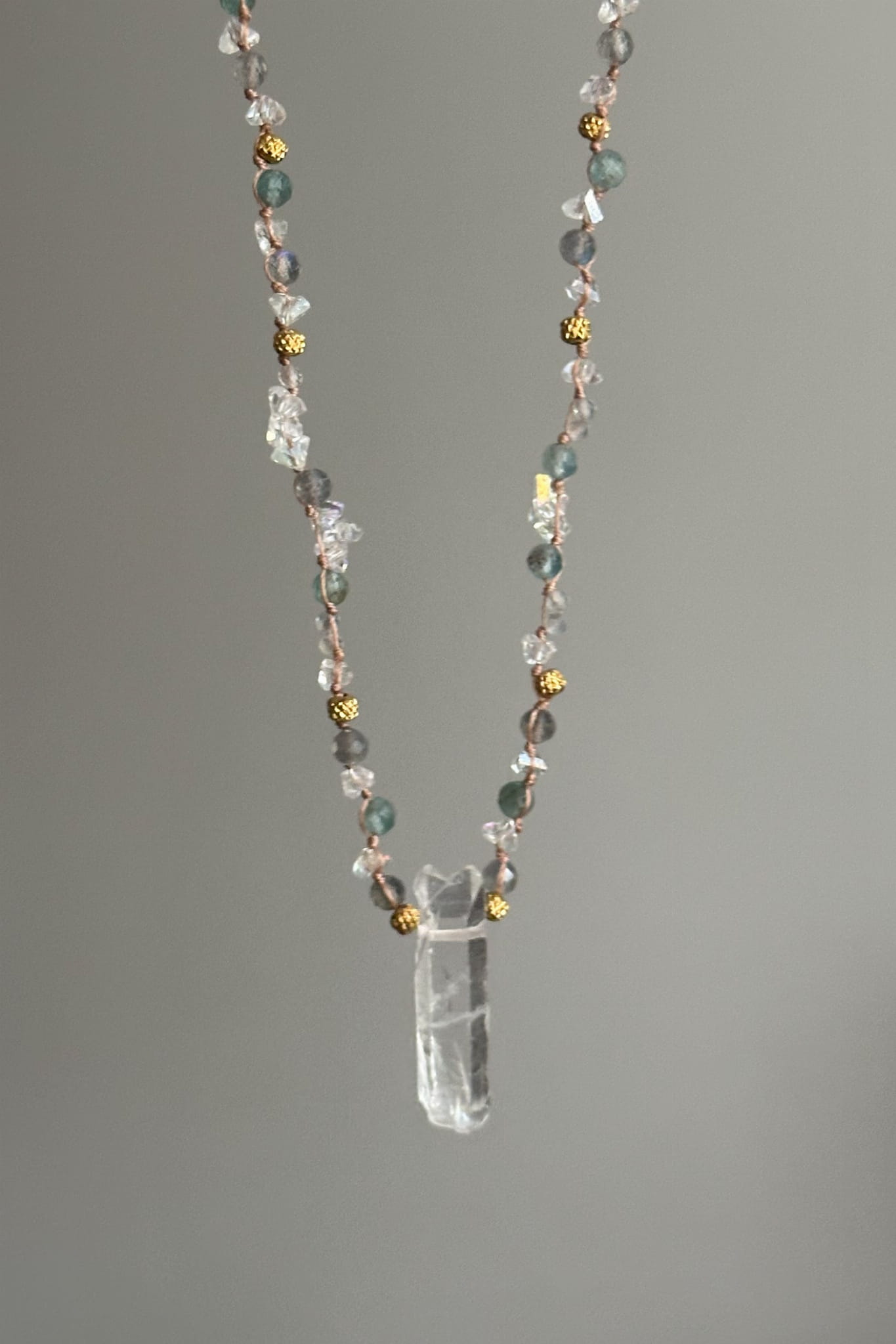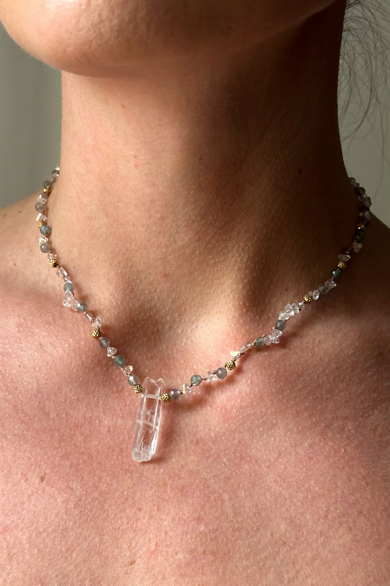 naszyjnik z kryształem górskim, naszyjnik z labradorytem, naszyjnik z kyanitem, biżuteria handmade, naszyjnik z kamieni naturalnych, biżuteria z kryształów, naszyjnik eteryczny, naszyjnik ochronny, stal szlachetna 316L, naszyjnik Lulobelia, unikatowy naszyjnik, naszyjnik z kamieniami