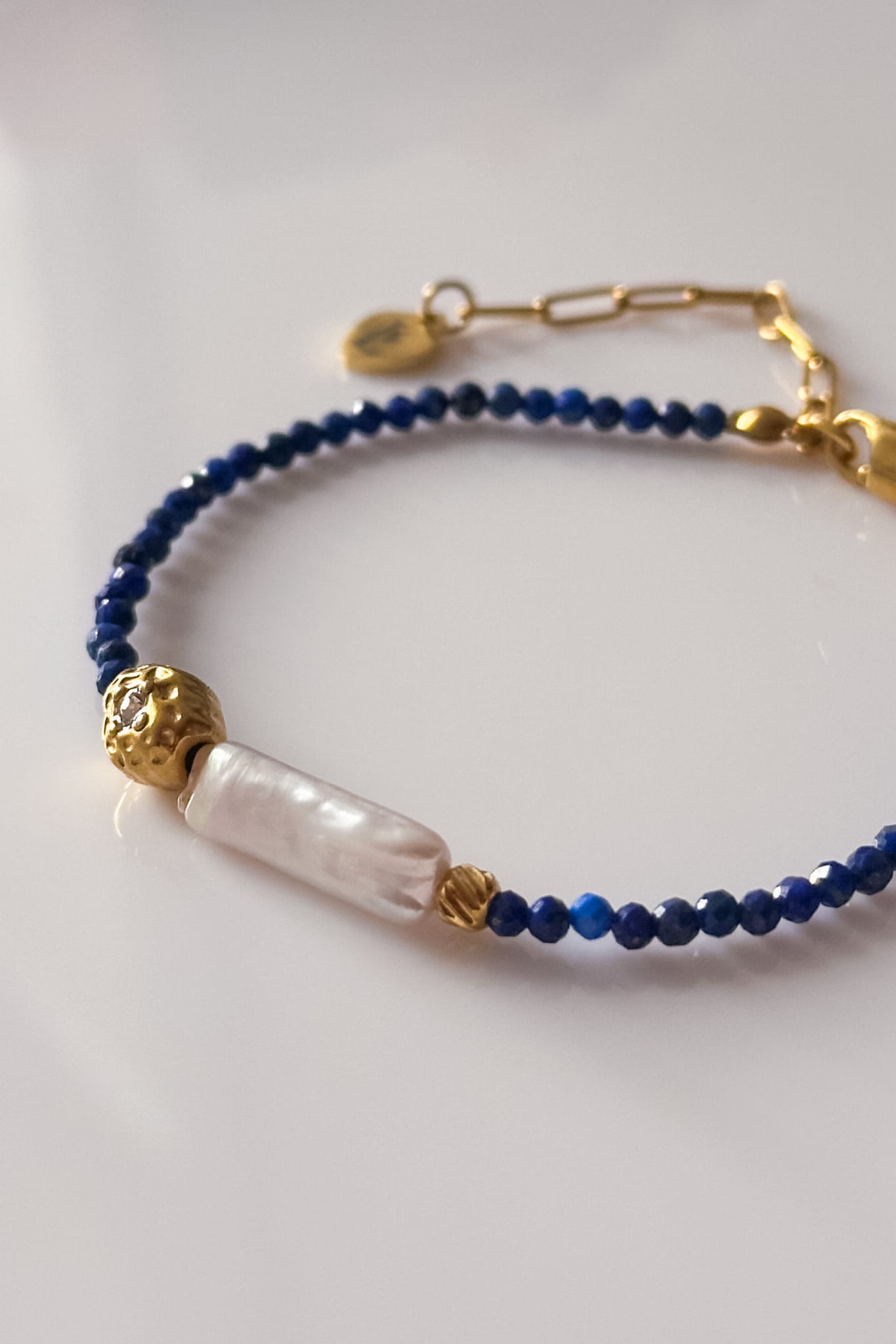 Aurelia Blue to delikatny komplet z lapis lazuli i naturalną perłą, stworzony na cienkiej lince 0,24 mm, idealnej dla drobnych 2-mm kamieni. Lekki, elegancki i pełen błękitu – dla kobiet, które lubią subtelny, ale wyrazisty detal. Naszyjnik 41–48 cm, bransoletka 16,5–21 cm, kolczyki 5,5 cm.