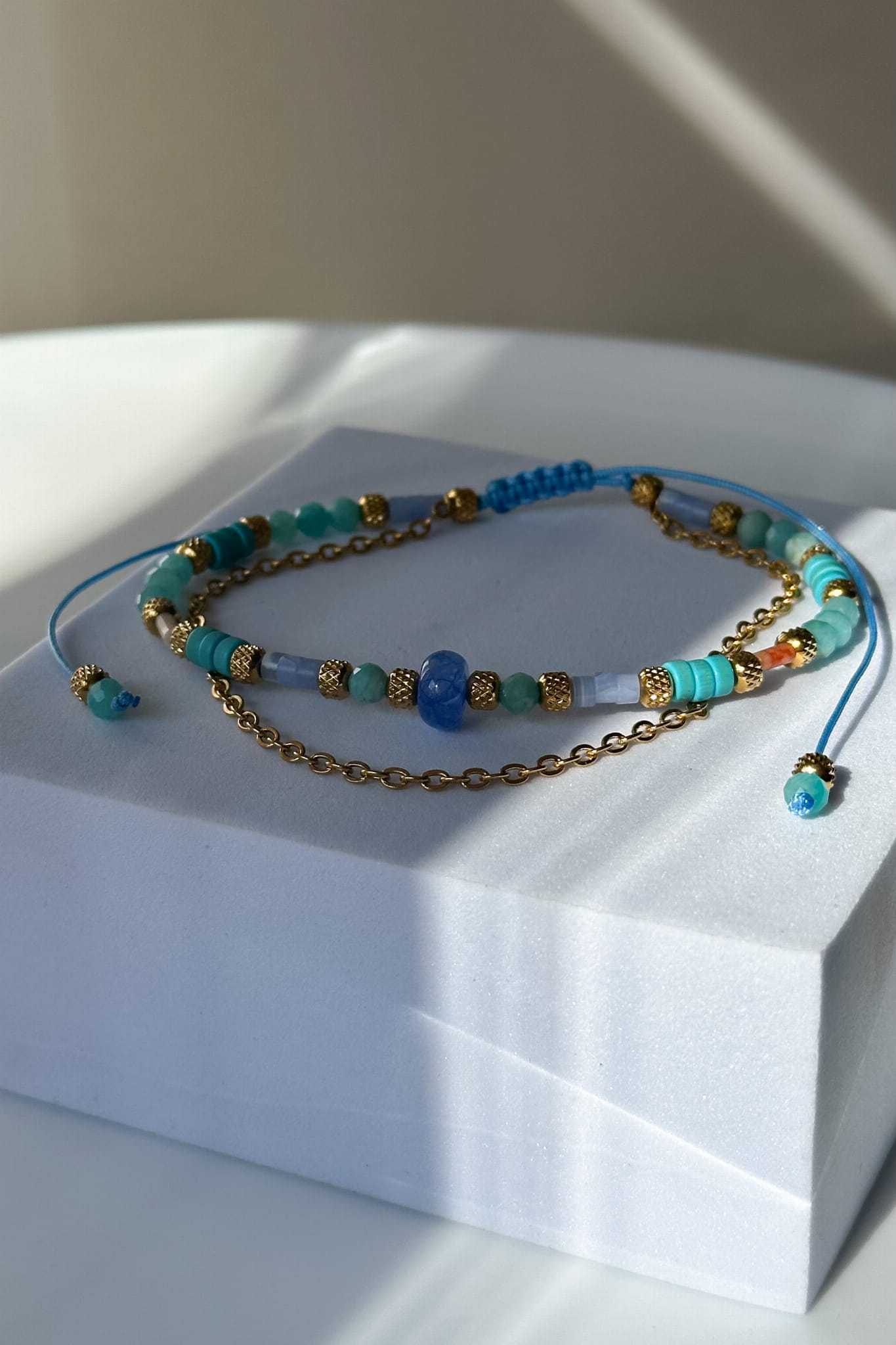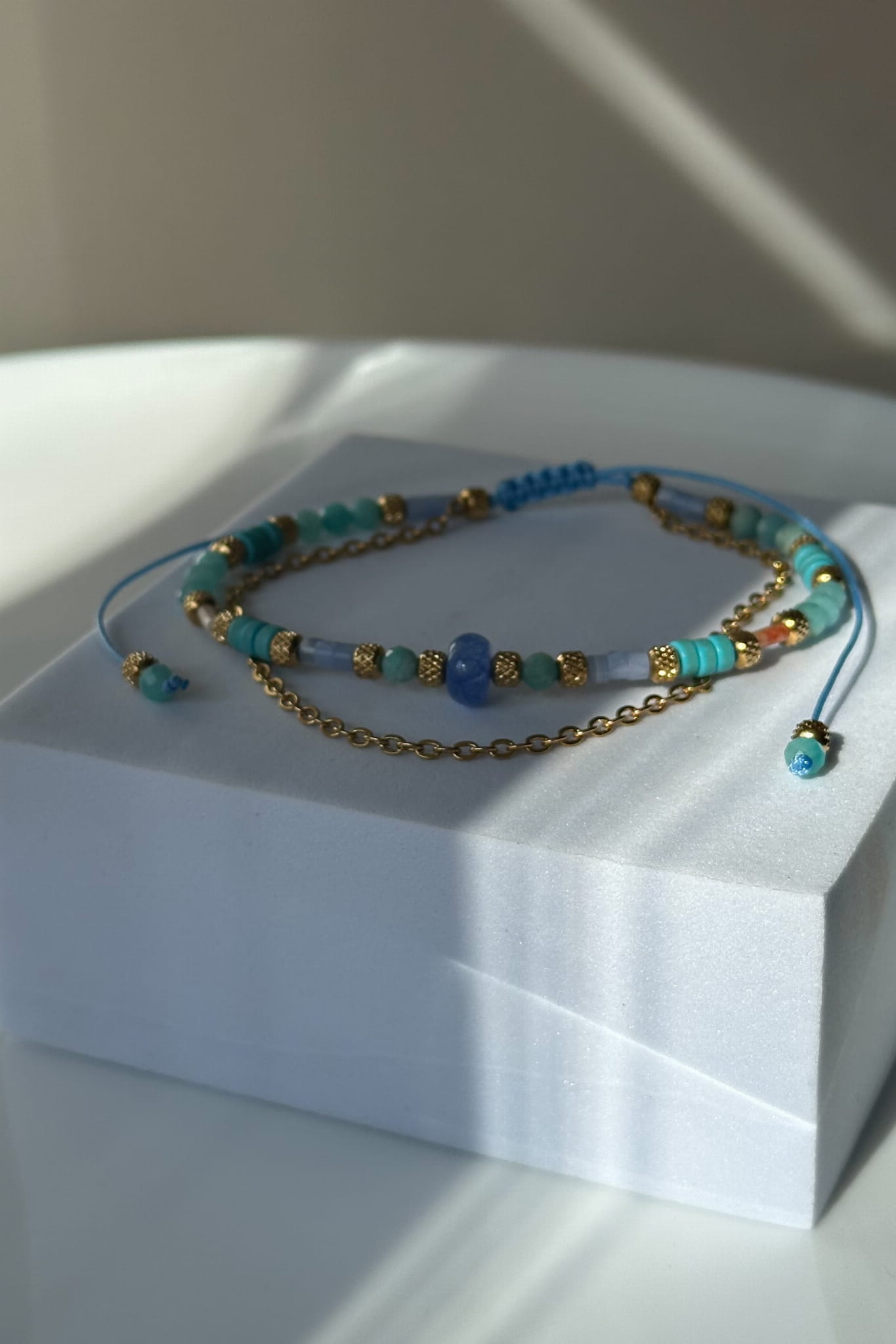 Anemos - bransoletka na kostkę z błękitnych kamieni