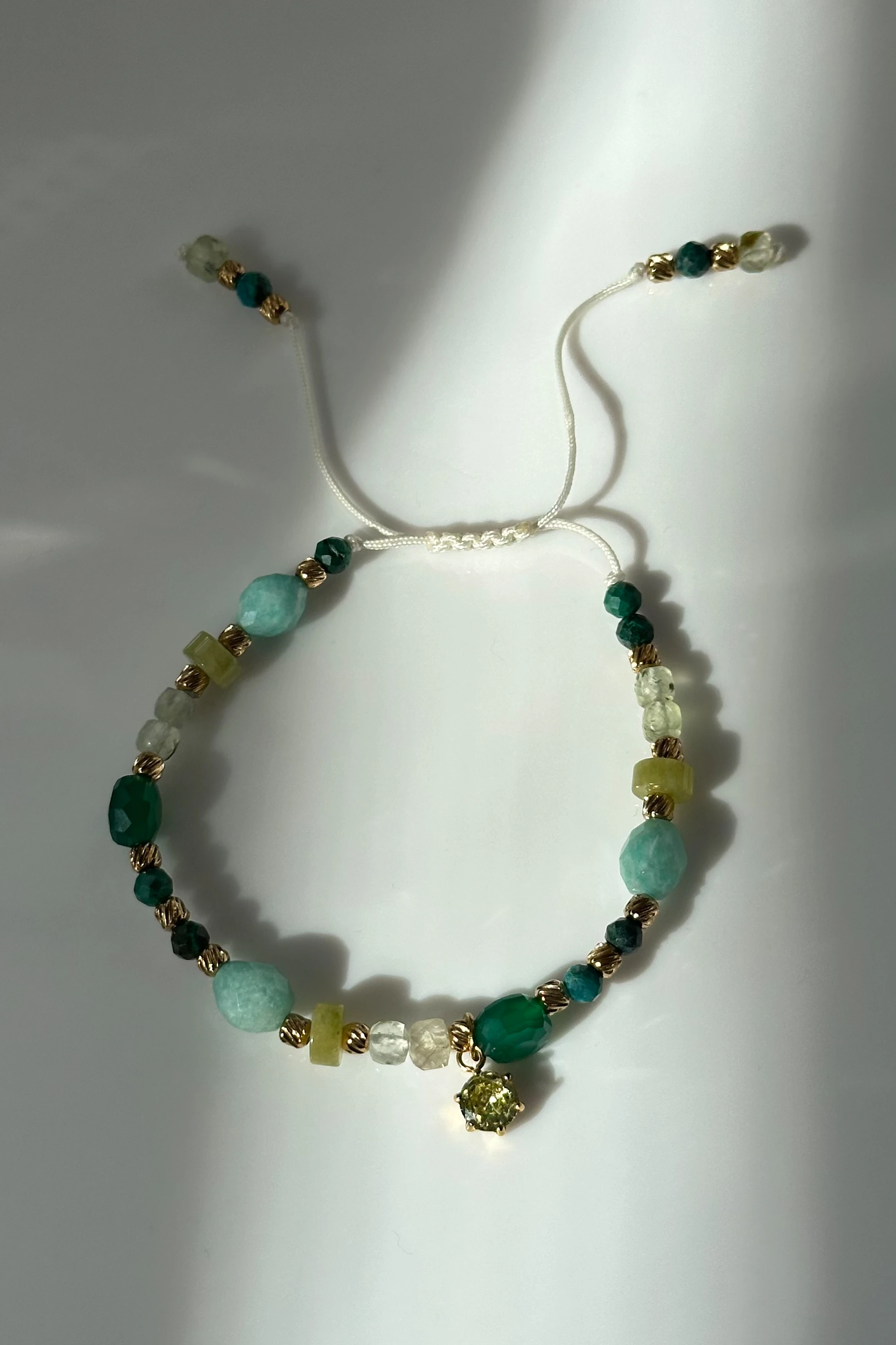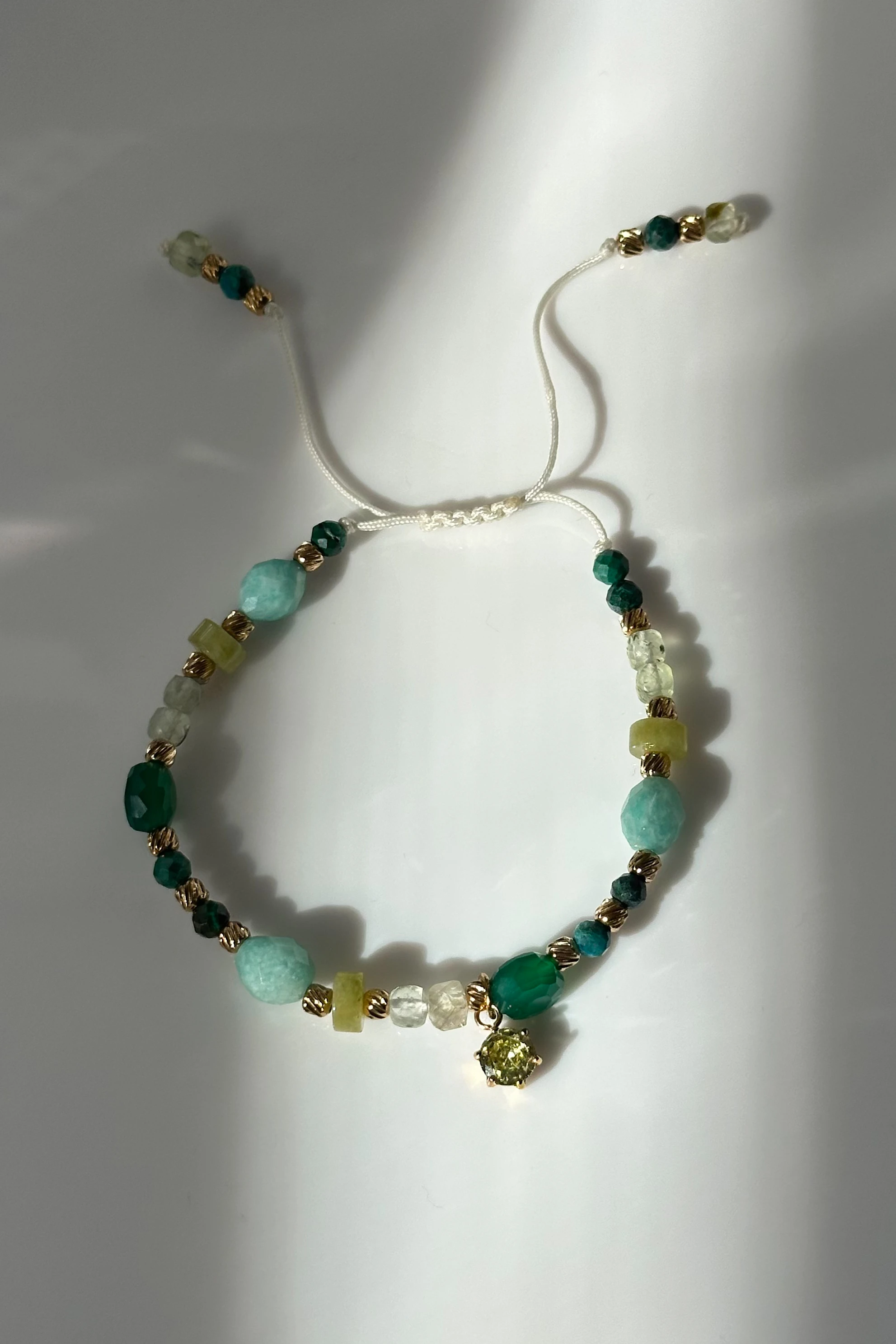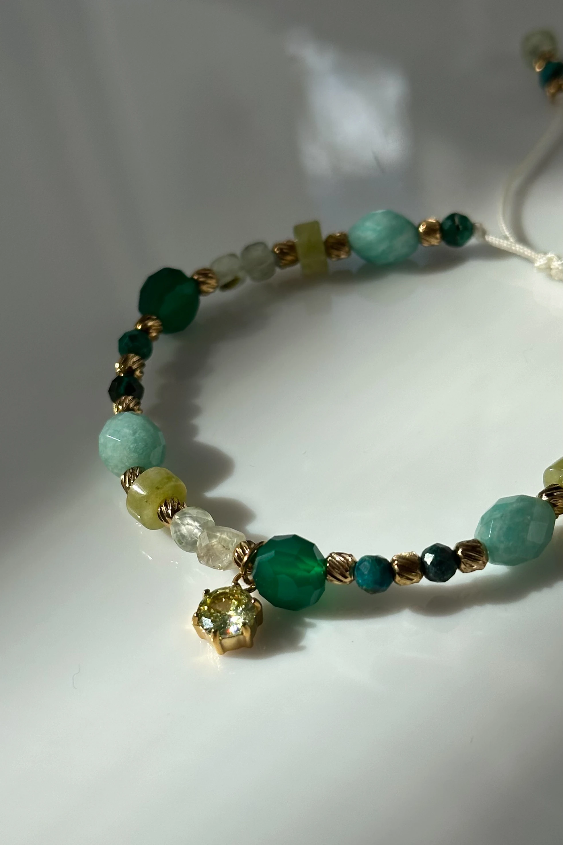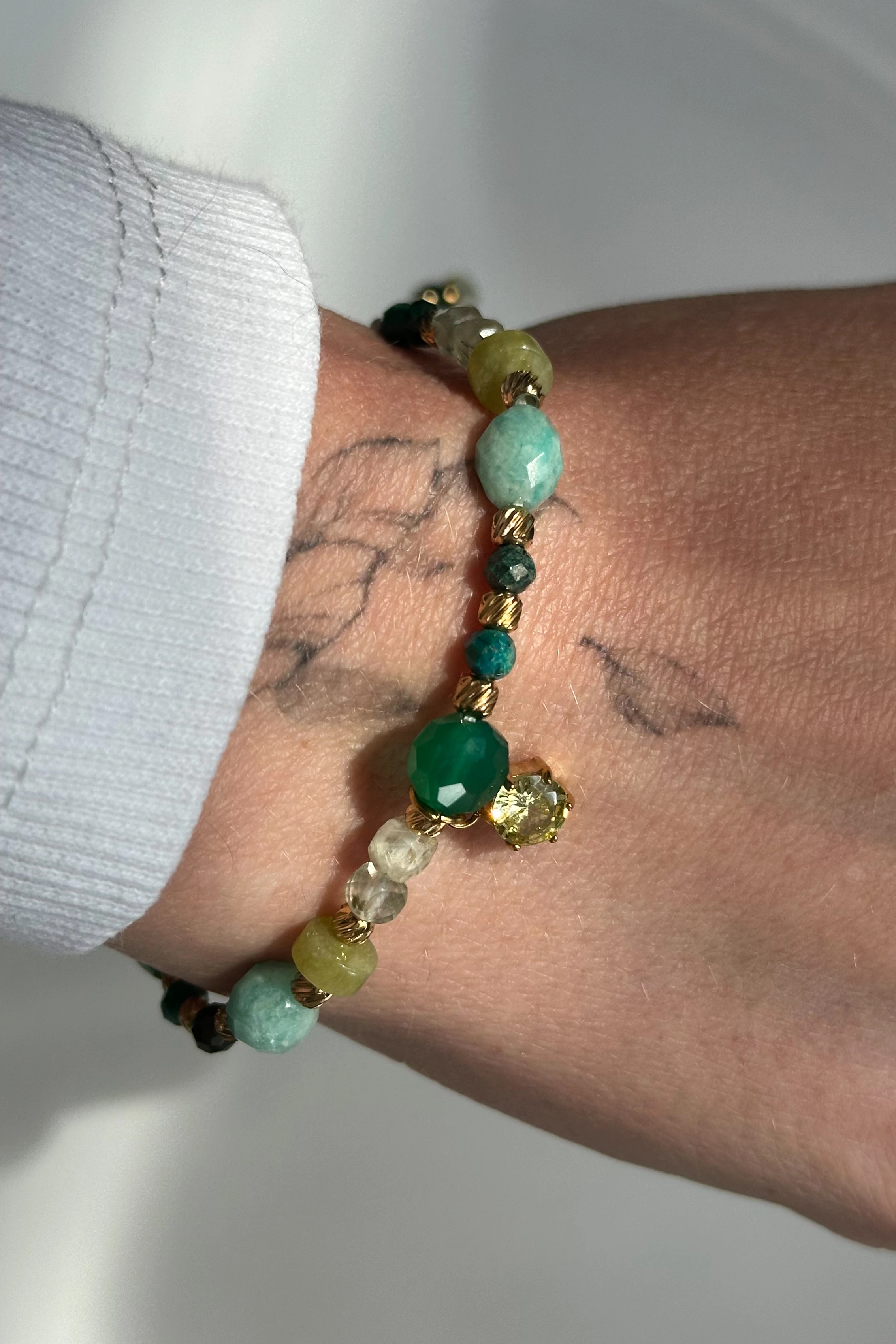 Bransoletka inspirowana spokojem, który czujesz, gdy na chwilę zwalniasz i wracasz do siebie. Zieleń natury, miękkość i oddech zamknięte w kamieniach.