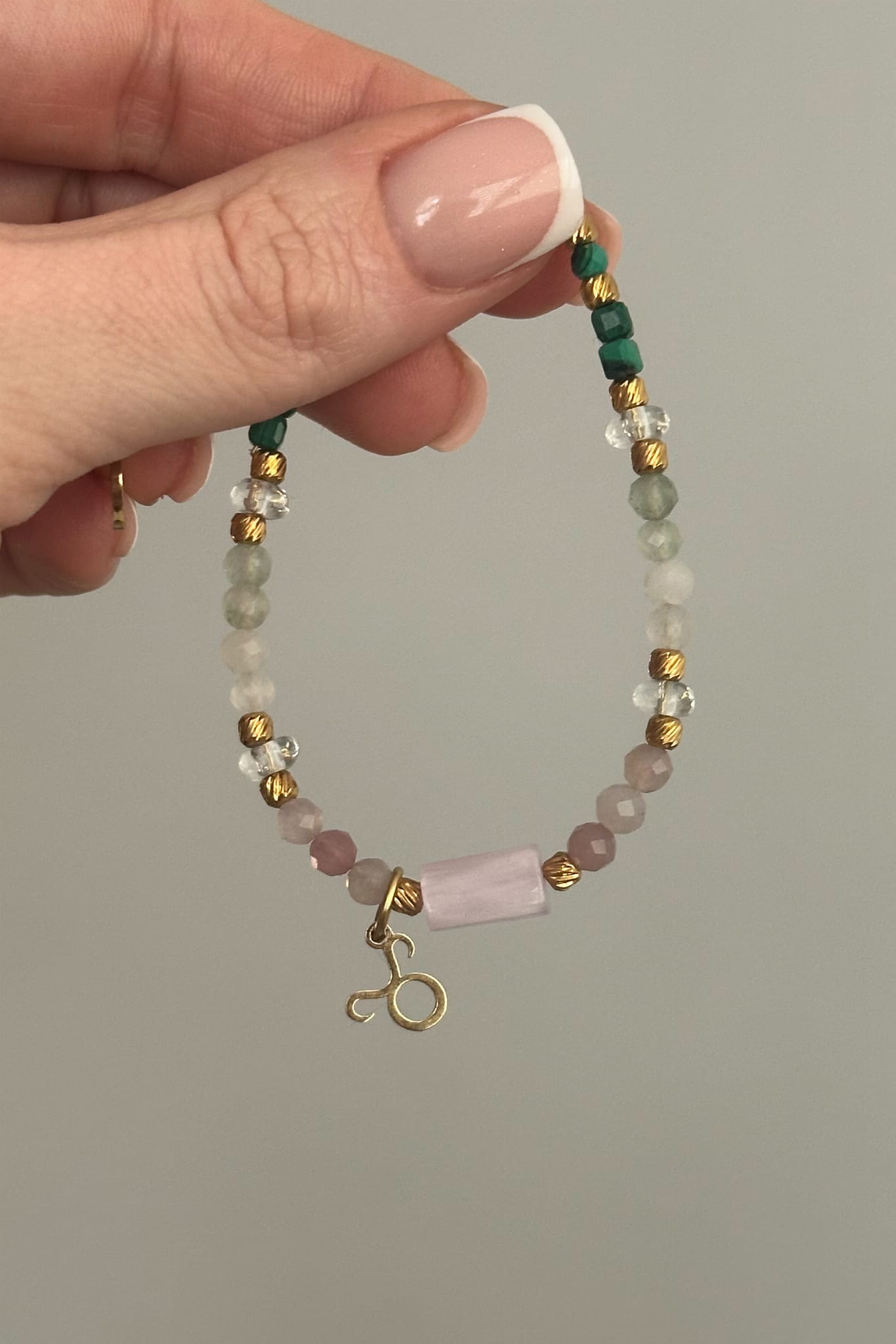 Byk · Soft Ground bransoletka zodiakalna z kamieni naturalnych kunzyt, malachit, kwarc różowy
