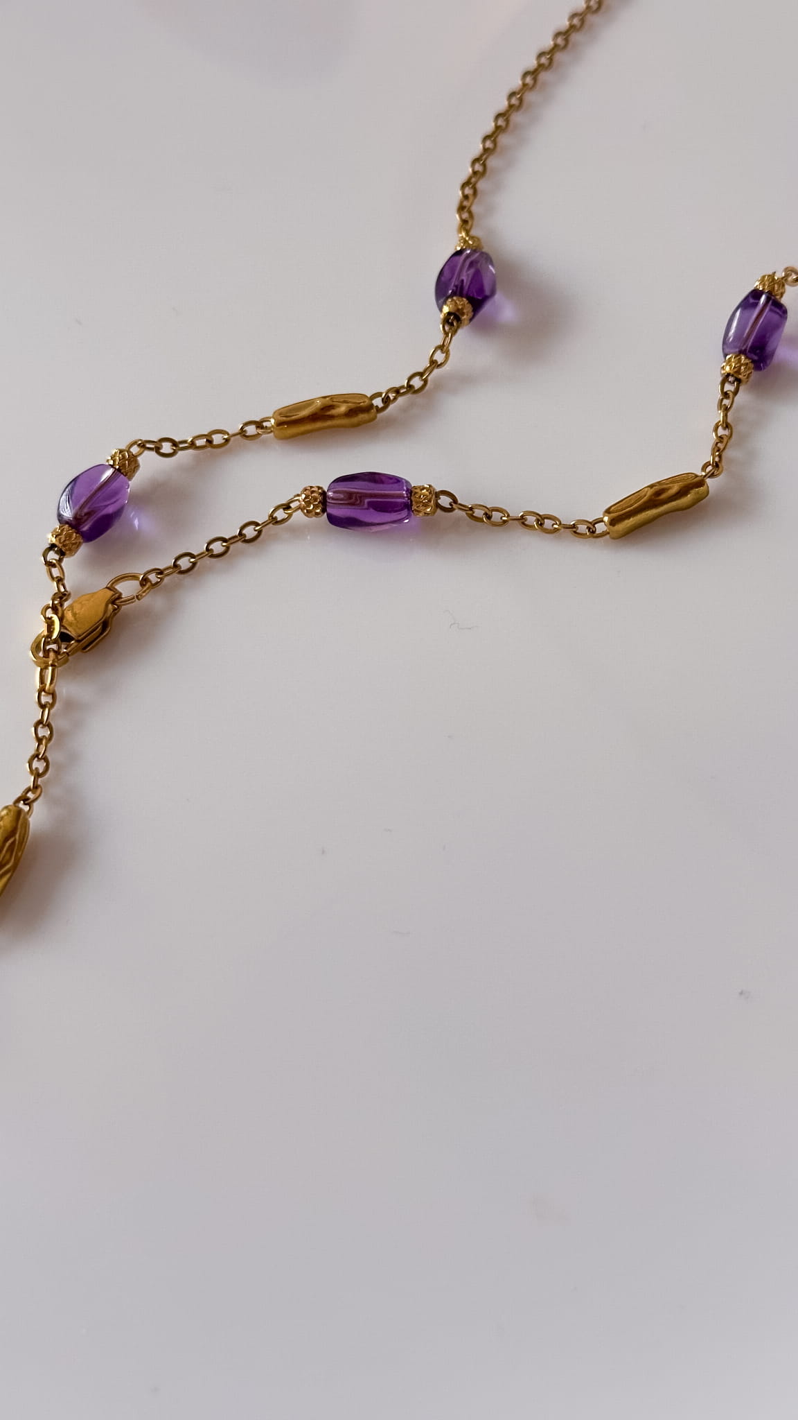 Calma – naszyjnik z ametystem z krawatką ze stali szlachetnej