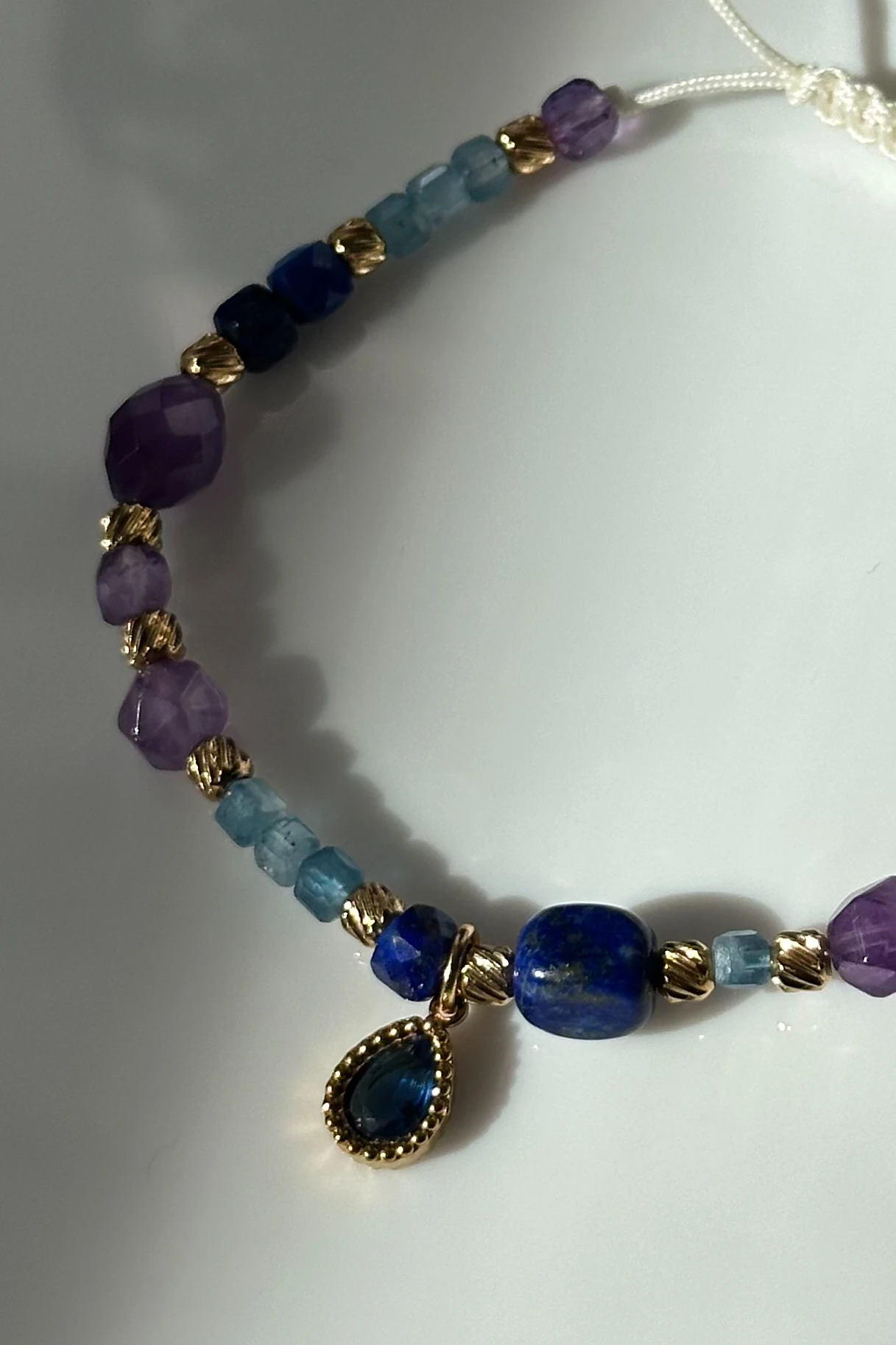 Niebieskie migdały - bransoletka z kamieni naturalnych ametyst i akwamaryn
