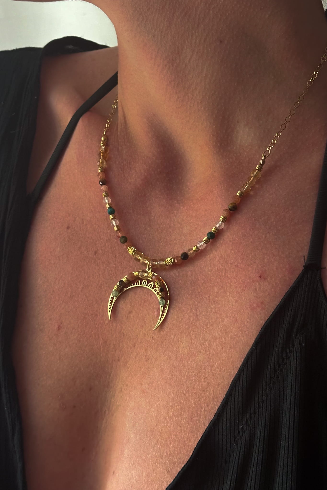 Shashi – naszyjnik z księżycem lunula, luna, naszyjnik z księżycem i kamieniami