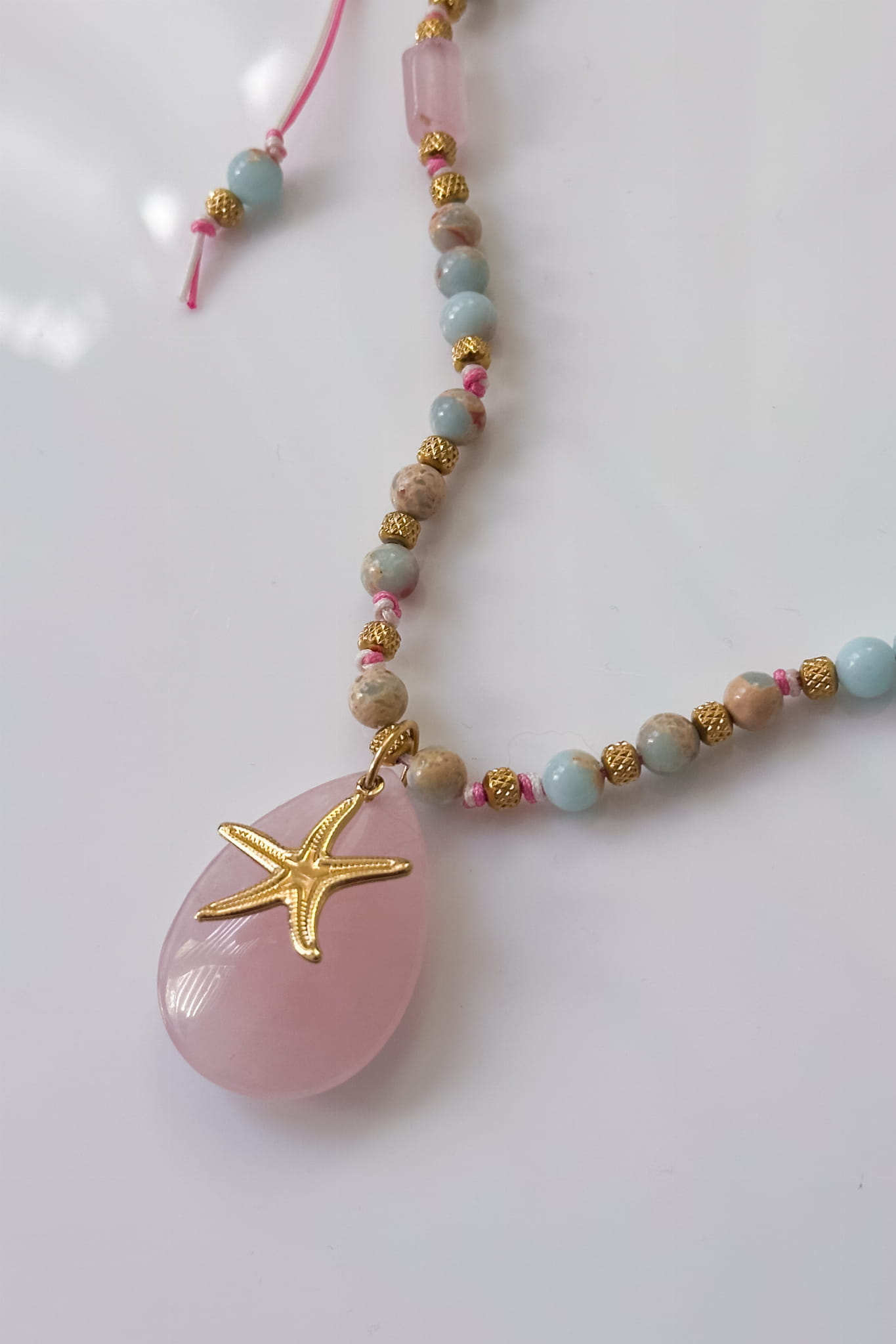 Naszyjnik z rozgwiazdą i kwarcem różowym