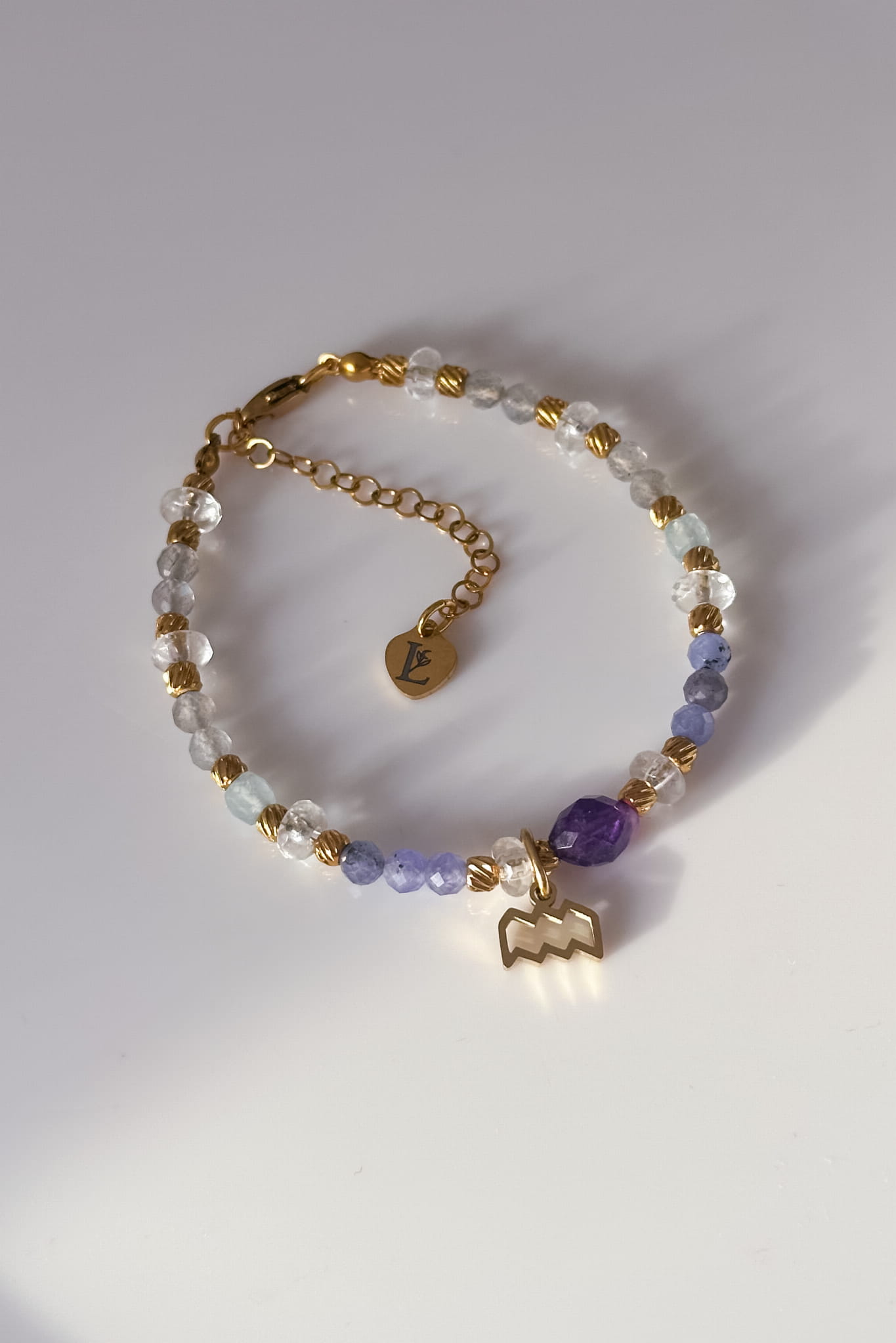 Wodnik · Free Mind Bransoletka z kamieni naturalnych ametyst, tanzanit, labradoryt